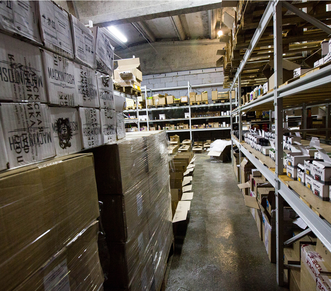 Более 1500 квадратных метров со стеллажами высотой 5 метров под завязку забиты вкуснейшей жижей, электронными сигаретами и табаком для кальяна от лучших производителей!